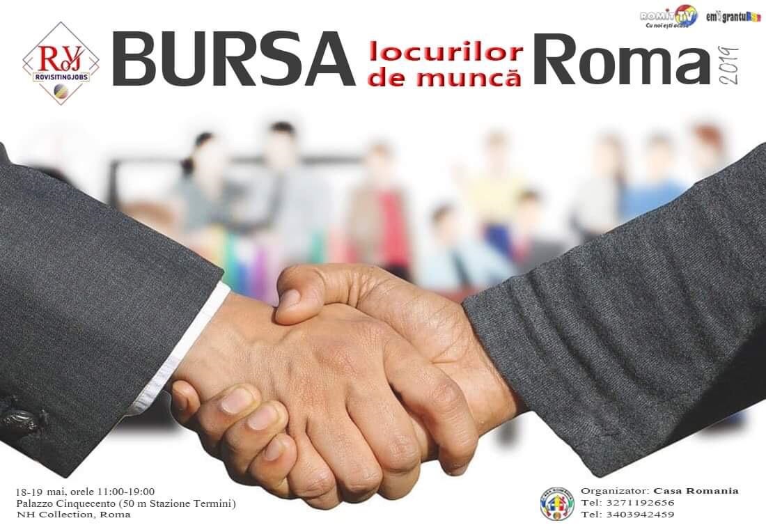 Asociatia Casa Romania din Roma , prin presedinte Simona Beletchi va invita si doreste sa va faca cunoscut Evenimentul Bursa Locurilor de Munca Roma 2019 , programat in perioada